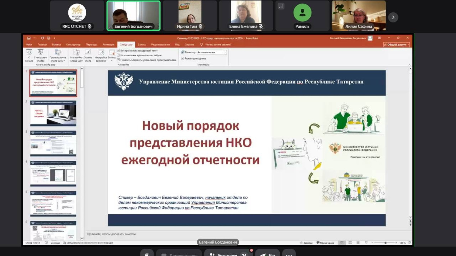 Специалисты Министерства юстиции Республики Татарстан при поддержке Общественной палаты РТ провели онлайн-семинар, посвящённый одной из самых актуальных тем для некоммерческих организаций: